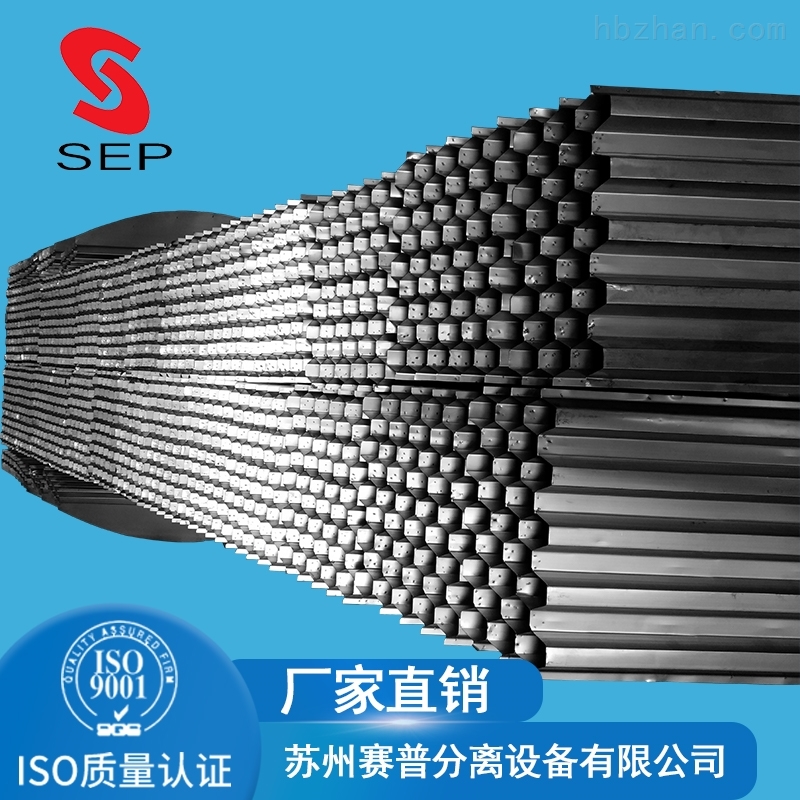 80mm孔径不锈钢蜂窝斜管填料上部固定由于斜管填料比重为0.92略小于水,斜管填料在池内组装到位后需要在填料上方自左向右方向拉上 10mm的圆钢进行加固(每个单元填料上部要求有两根圆钢通过),圆钢两端在沉淀池池壁上可靠固定,安装圆钢后可以很好地防止斜管填料在初期使用时有可能发生的松动上浮现象,圆钢采用环氧煤沥青防腐。
